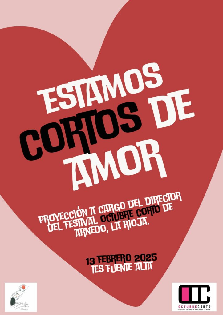 El próximo jueves 13 de febrero el IES Fuente Alta recibirá la visita de Chechu León, director del Festival Octubre Corto de Arnedo, La Rioja. Es la segunda vez que tenemos la suerte de poder disfrutar de una selección de los mejores cortos que han pasado por la larga trayectoria de este prestigioso festival que ya lleva 26 ediciones. Además, Octubre Corto colabora con la preselección de cortometrajes para los Premios Goya. En este caso, aprovechando la fecha próxima de San Valentín, Chechu León nos traerá una selección de cortos de amor en el amplio sentido de la palabra. Amor romántico, amor maternal, amor platónico, amor diverso, desamor… Esperamos que el alumnado disfrute de esta oportunidad y quién sabe, a lo mejor despierta su vocación creativa y de esta sesión sale el próximo Jota Linares.